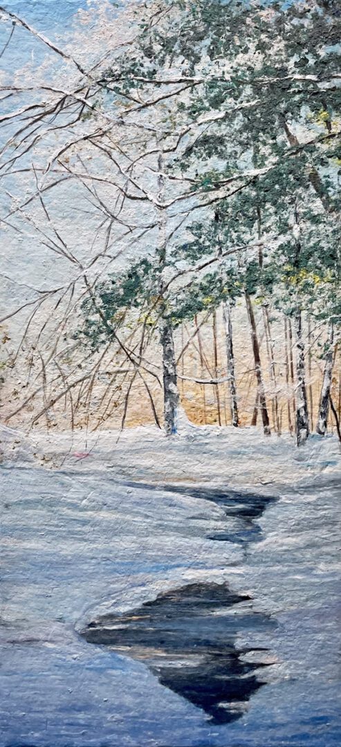 Birch trees in Winter, 45 x 20 x 3 inches.